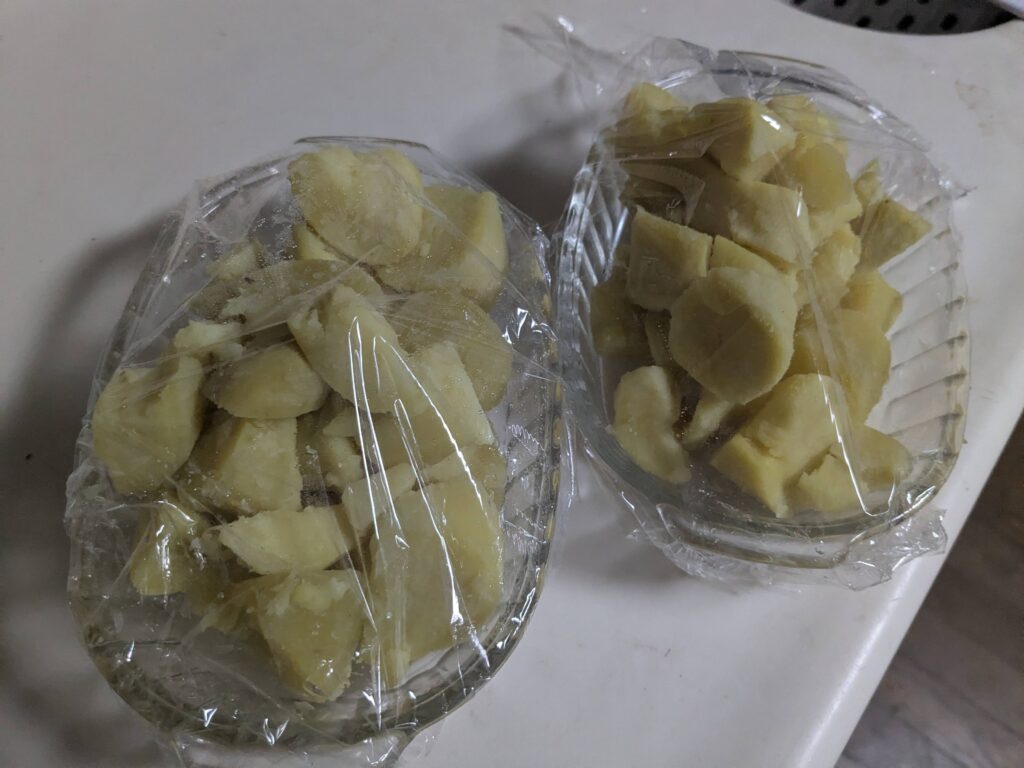 近所のおばあちゃんにナスとさつま芋を頂いて