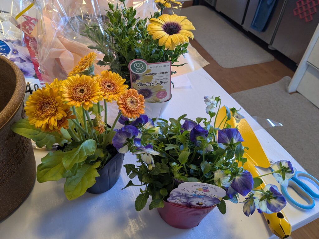 少し大きめな植木鉢に寄せ植えをしてみました。