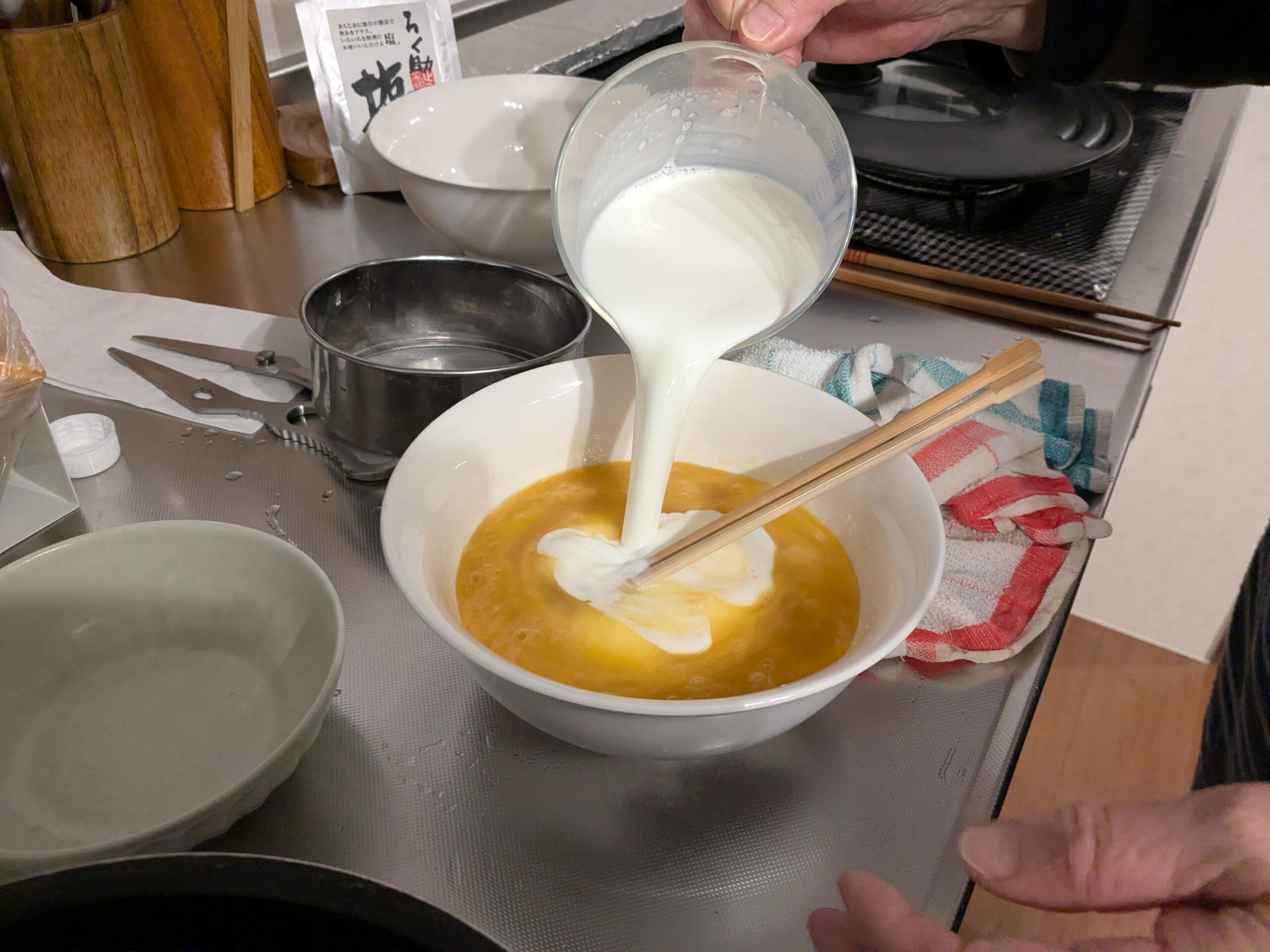 ザルで2回こした液を優しーーく流し込み