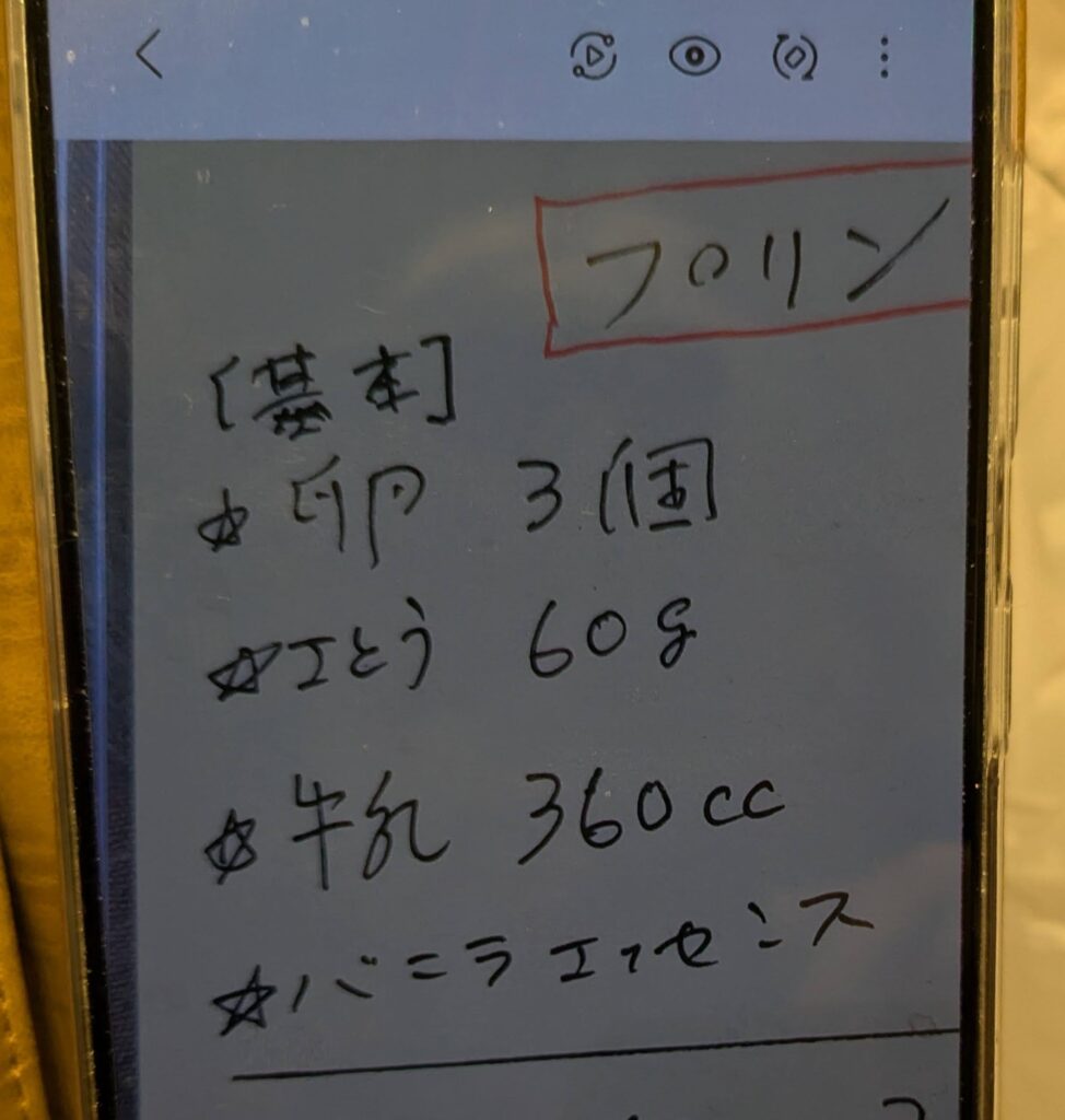 🍮プリンのレシピの材料🍮