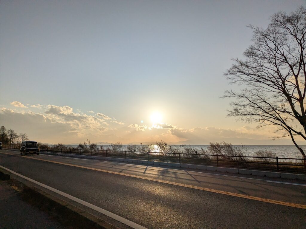 帰り道。琵琶湖の景色がとても美しく感動しました。