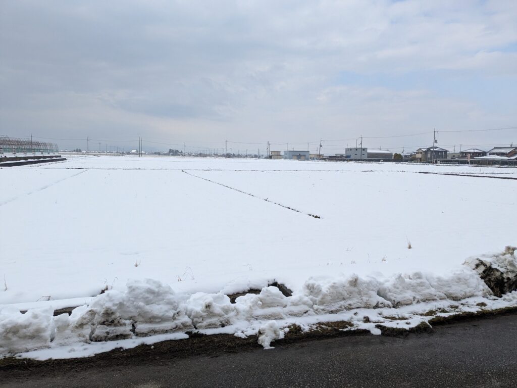 田んぼの雪景色が綺麗でした。
