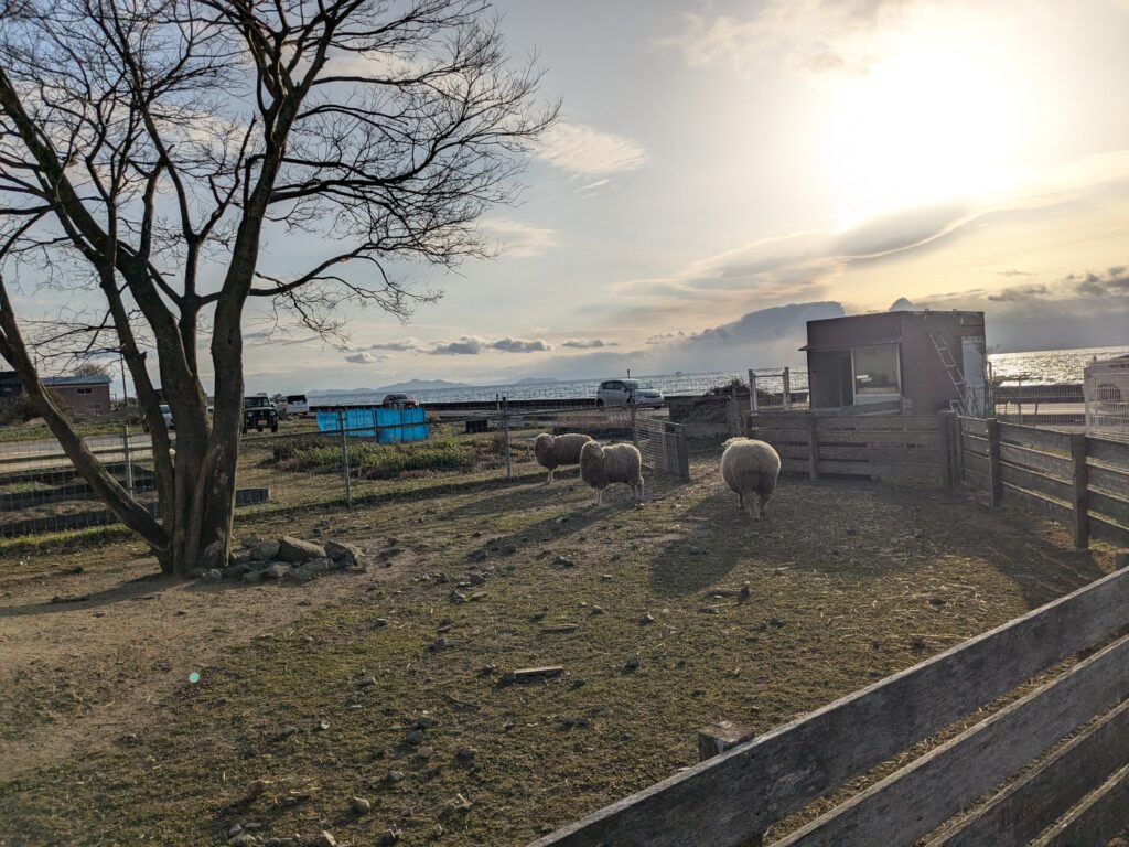 琵琶湖を背景に、のどかな🐏羊さん達💖