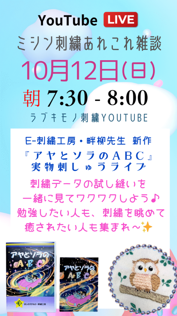 🎥今週末はライブ2本立て! PP1開封の儀と、E刺繍工房「アヤとソラのABC」実物紹介