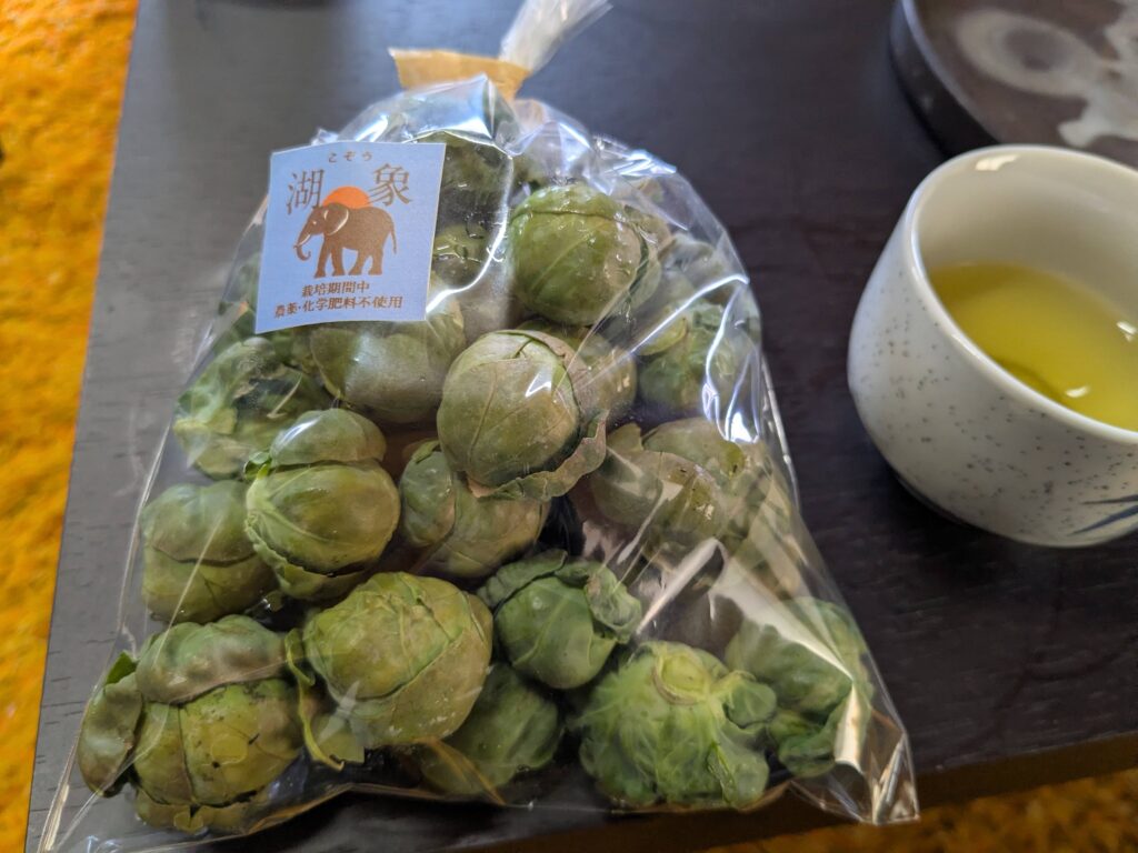 残念がっていたら、芽キャベツの出荷前のを出して来て下さいました💖