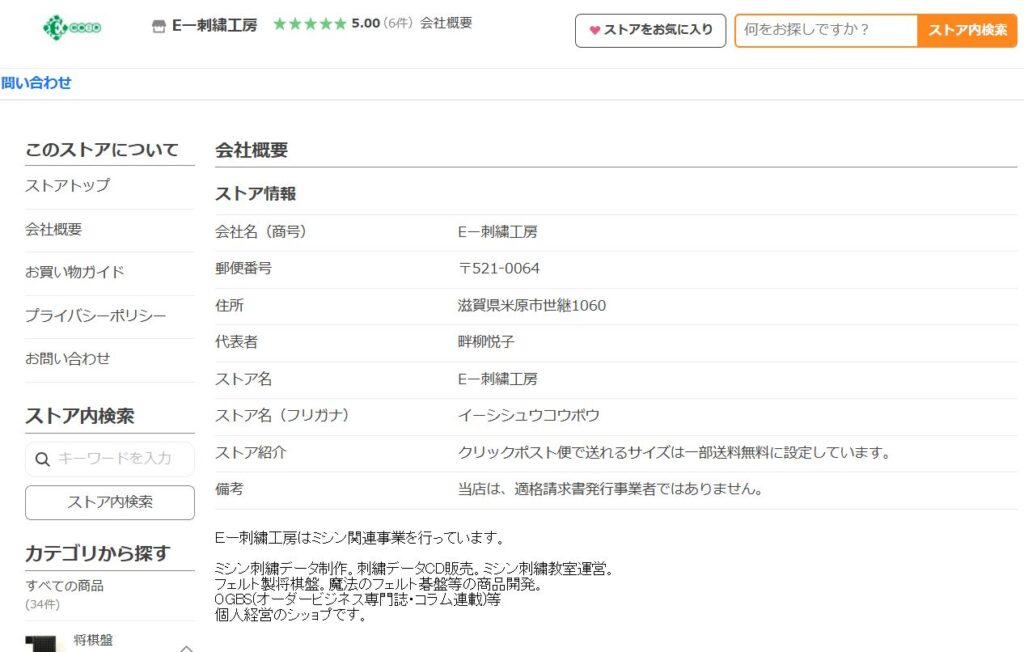 やっとYahoo!ショップの『会社概要』のページの変更が出来ました😭