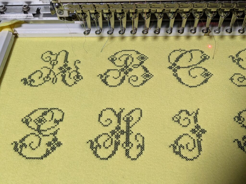 つづいて、クロスステッチのフォントも試し縫いを致しました。