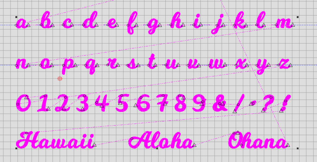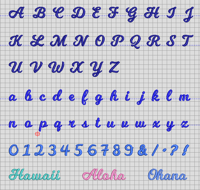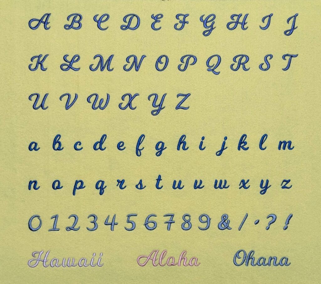 小文字の筆記体部分は、一筆書きの刺繍データ用に作ってあります。
