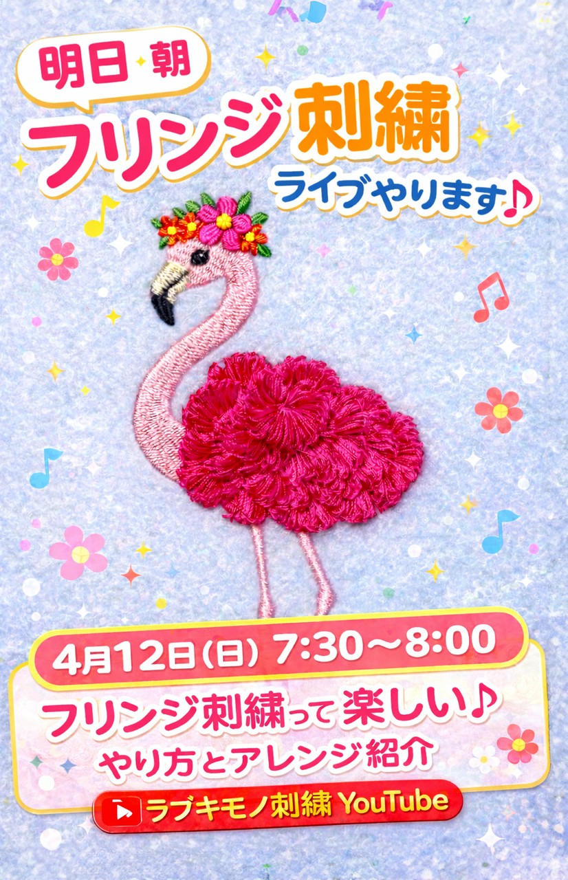 明日の朝は、ラブキモノ刺繍の鈴木ひろ美さんの