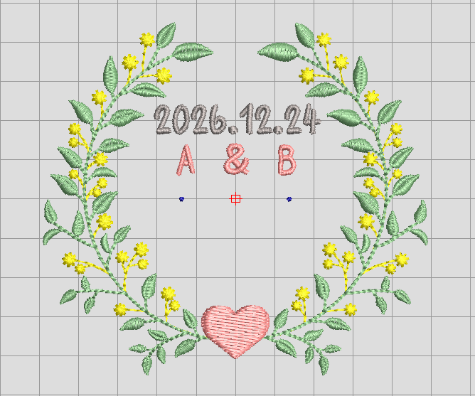 リングピロー刺繍の上の辺りに