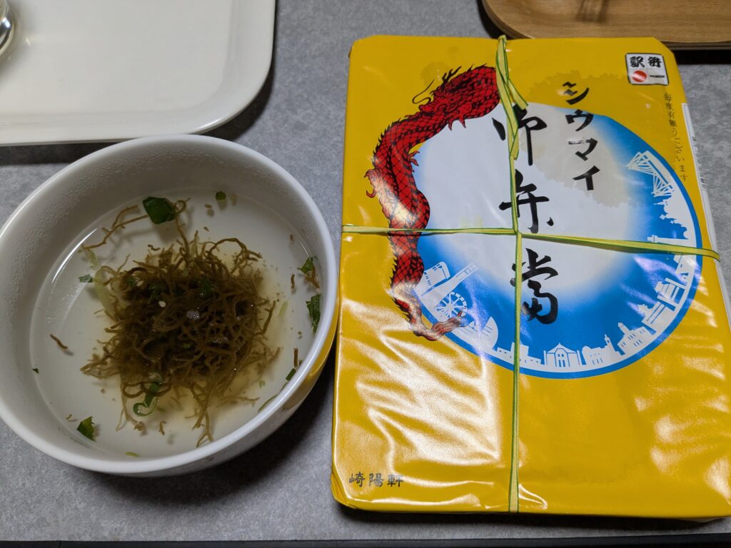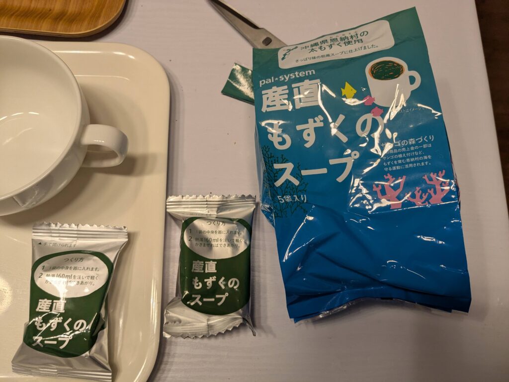 本日の夕食は、産直のもずくのスープ☕と・・・