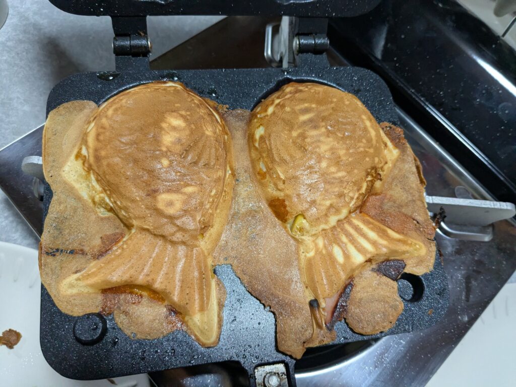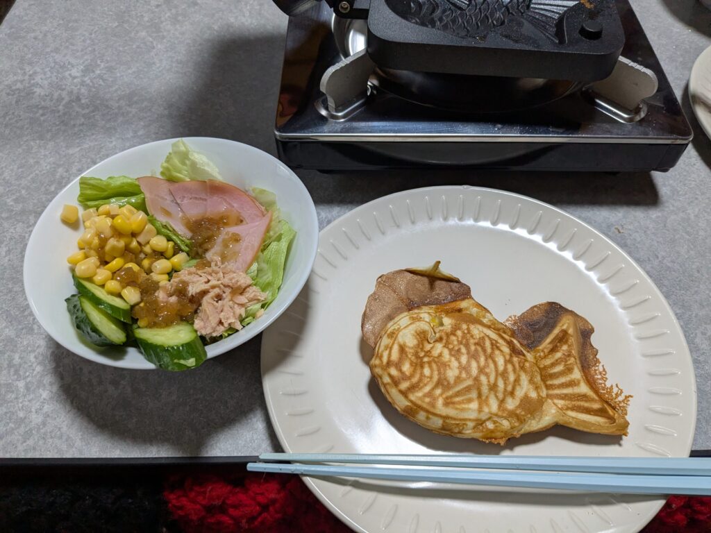 朝は、ハムチーズ鯛焼きを待っている間もミシン刺繍の話ばかり(笑)
