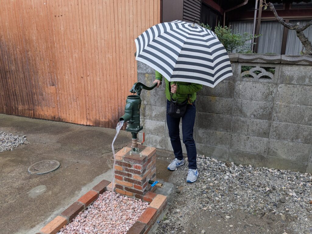 生徒様と井戸ポンプ体験と・・・早朝散歩を楽しみました。