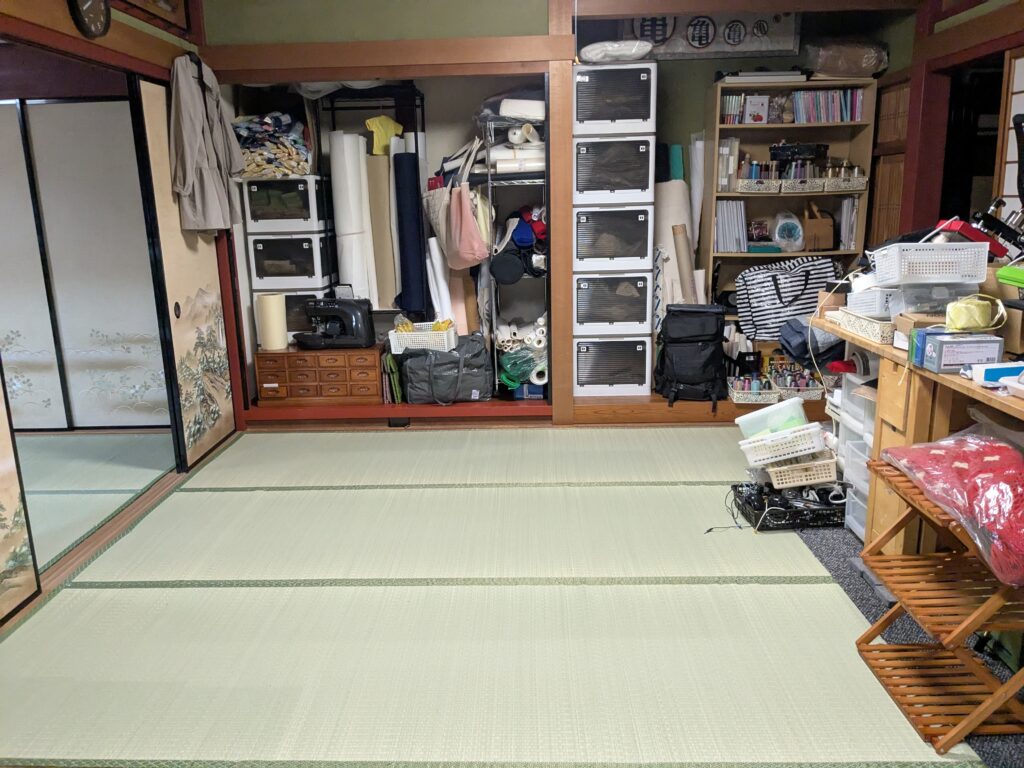 プレス機を廊下側に移動して、6畳二間続きのお部屋は
