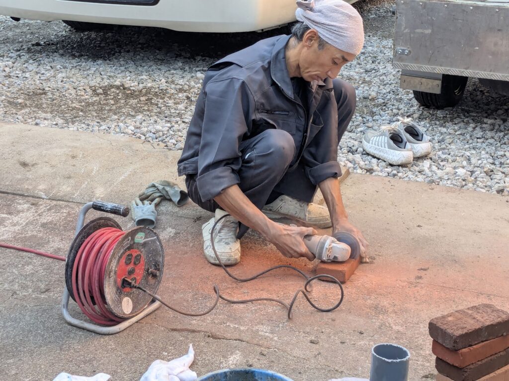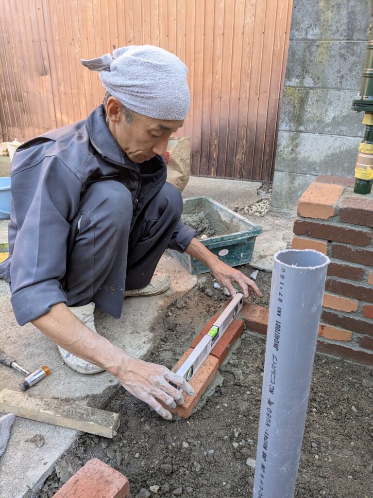 可愛いレンガを池田さんがとても丁寧に丁寧に