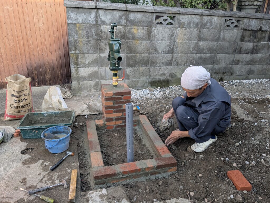 古民家再生ブログ・株式会社辻工務店様 その23 電気工事屋さんと井戸のレンガ積み💖