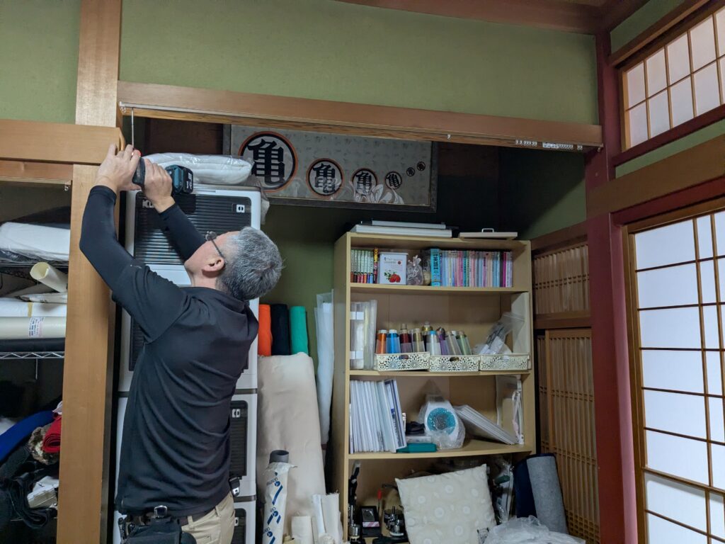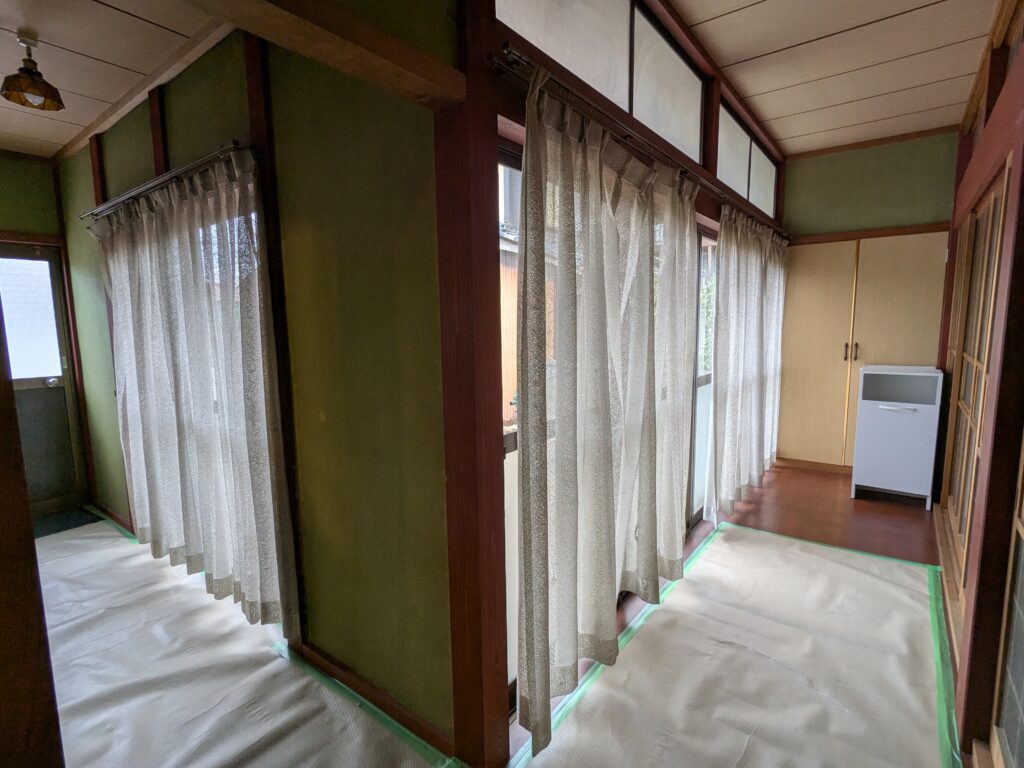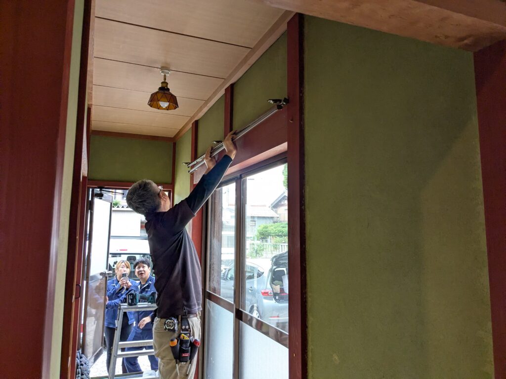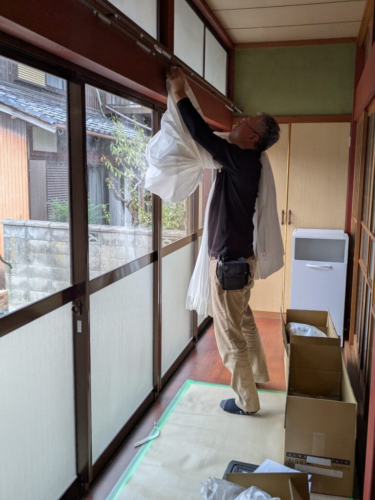 古民家再生ブログ・株式会社辻工務店様 その38 新しいカーテンと看板の足元に砂利が入りました💖