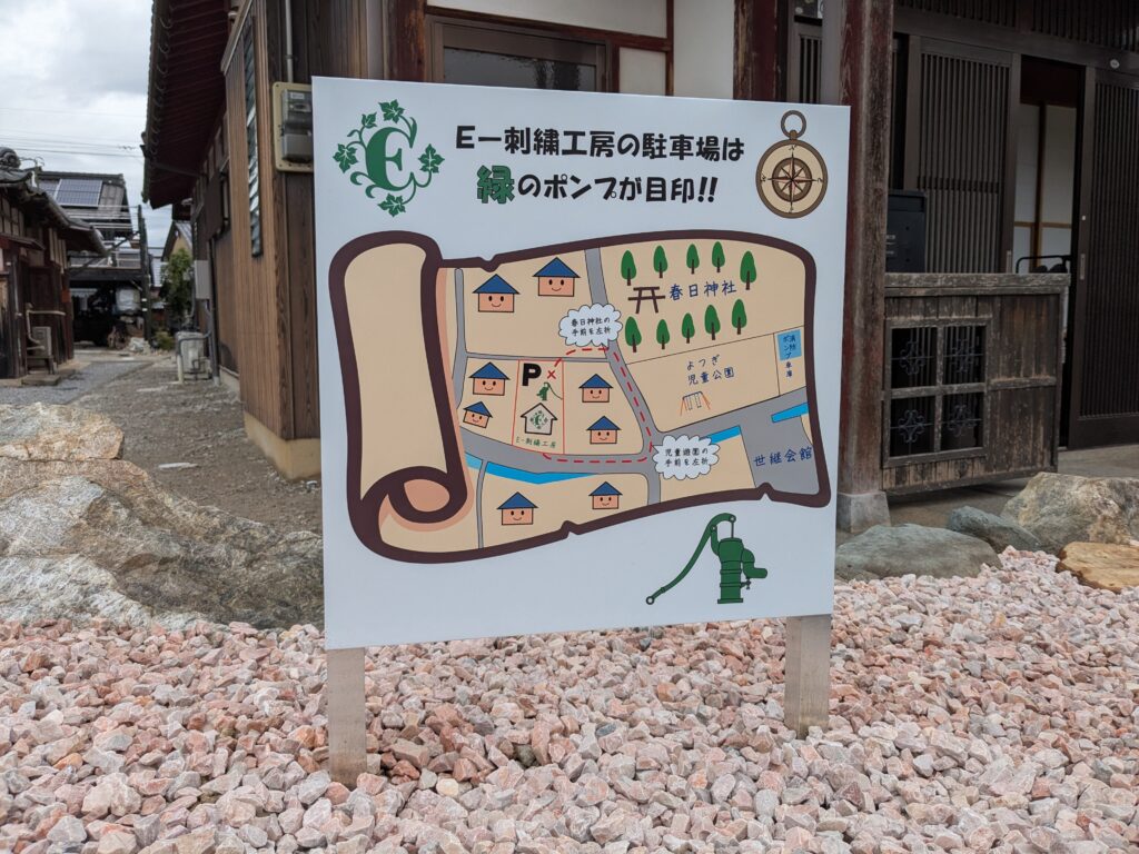 初めてEー刺繍工房の駐車場看板が出来ました。
